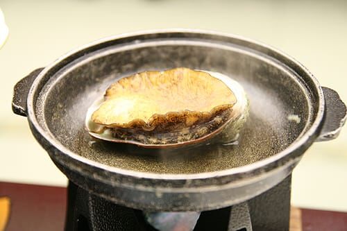 伊豆下田・ホテル伊豆急の夕食に出てた逸品の第二弾です。 もうすぐ焼き上がりという段階で撮った写真がこちら(↓) 焼き上がった後、殻から身を剥いでお皿に取ってバターを載せ、とろけたところでレモンを搾ってからいただきました。アワビが新鮮な上に焼き加…