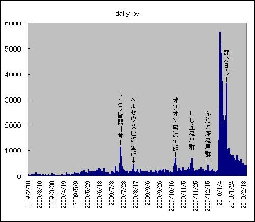 当ブログは開設から一周年を迎えました。 昨日、総pv数が11万を越えました。数多くのアクセス、本当に感謝しております。 ちなみにpv数の日々変化のグラフがこちら↓ やはり話題性の高い天文現象イベントがあるとアクセス増になるようです。 なお、総記事数は…