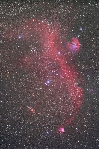 先月ご紹介した薔薇星雲のある「いっかくじゅう座」にはこんな星雲も潜んでます↓ 【IC2177】 キヤノンEOS Kiss Digital X + 口径18cm写真撮影用反射望遠鏡(F2.8) ISO800 総露出時間128分(8分×8コマ加算×2フレームパノラマ合成) 赤道儀架台使用(恒星追…