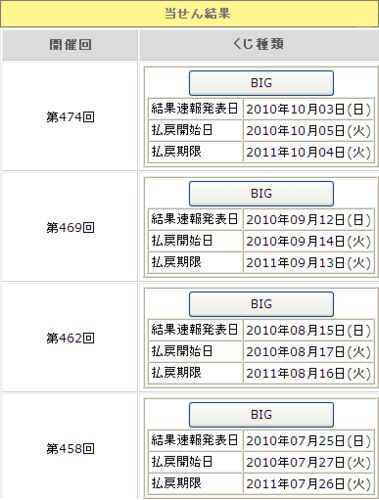 先週販売分のBIGで5等が当りました。当せん金は1800円也。 これで4ヶ月連続になります↓ 4等以上がなかなか来ませんが、このまま貯金(?)し続けて、 近い将来、預金額以上にドッサリおろすことができれば嬉しいなぁ・・・