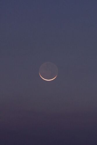 今日の夕方、西の超低空に見えた細い月を撮ってみました↓ 昨日の朝5時台に新月となりましたので、それから約1日半後の月です。 この時期は明縁の描く円弧がほぼ真下を向いて沈んでいきます。 反対に秋の夕方に見られる細い月は明縁がほとんど右向きになりま…