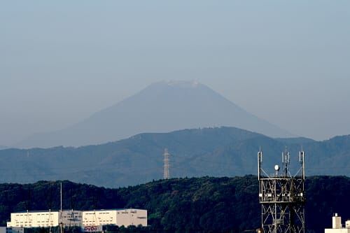 ちょっと霞んでますが、頂上付近の冠雪が確認できました↓ 24日に初冠雪が発表されましたが、昨日から気温が高めなので、一旦、雪が消えるかも?