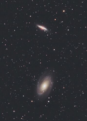 先週、ガラッド(ギャラッド)彗星を撮影した夜、こんな天体も写してました↓ 【M81とM82銀河】 キヤノンEOS Kiss Digital X + 口径18cm写真撮影用反射望遠鏡(F2.8) 赤道儀架台使用 ISO800 総露出時間50分(5分露出×10コマ加算合成) 18世紀にこの天体…
