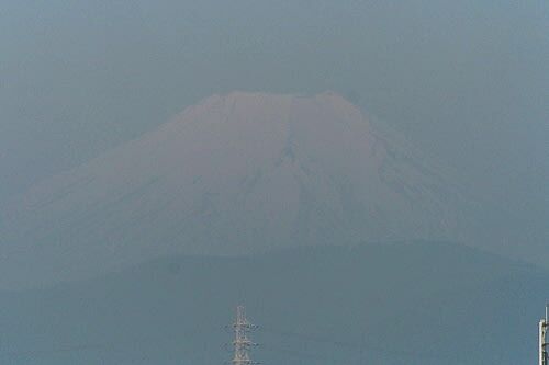快晴ですが視界は悪く、辛うじて見えてる感じ↓??今夜は部分月食ですが、天気が夜まで持つかどうか・・・