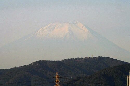 霞んでいて見難いですが、白い姿は確認できました↓ 雪は少し消え気味のようです。