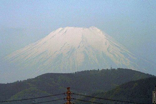 今日は雲に邪魔されずに見えてます↓ 透明度が悪いせいか、雪が消えた下の方の山肌がバックの青空に溶け込んでしまってます。