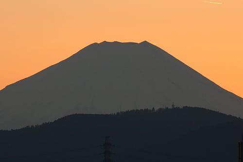 朝は雲に阻まれて見えませんでしたが、夕方にはクッキリとしたシルエットを拝めました↓ 右上に見える白い線は飛行機雲です。この時、西空には同時に6機も確認できました。