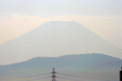今朝は少し霞み気味↓ 残雪が消えた後の興味は、初冠雪がいつになるかです。昨年はウチからの観測ベースですと9/25、公式発表では10/26(史上最も遅い記録)でした。