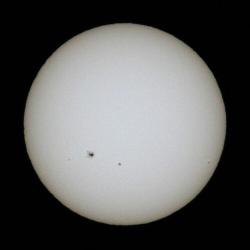 2日ぶりの太陽面撮影です。 EOS Kiss Digital X+EF400mm F5.6L USM+ND100000太陽撮影用フィルター 一昨日の撮影で確認した大きめの黒点が中央寄りにやってきました。そのせいもあってか、少し大きく見えるようになり、日食グラスを使って肉眼で眺めたらギ…