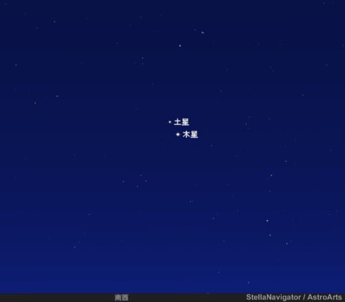 冬至まであと2週間ということで日没が早くなり、17時過ぎには明るめの星が見えてくる季節になりました。で、暗くなりつつある時間帯に、南西の空に最初に見つかる木星が現時点で事実上の一番星になってます。18時近くになると、その木星のすぐ左上にもう一つ…