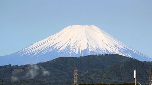 久しぶりにクッキリ見えてます。 昨日の富士山アメダスの最高気温は3.0℃。午前9時以降は夜までずーっとプラスでした。今日も気温が上がる見込みなんで、雪解けが一気に進みそうです。
