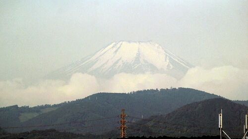 昨日より霞んでいる上に雲も多めですが、見えてます。 今夜はいよいよスーパームーン皆既月食です。天気はどうかなぁ・・・