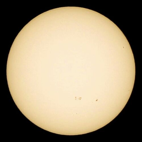 3日ぶりに太陽面を撮影。 EOS60Da+EF70-300mm F4-5.6ISⅡUSM(@300mm)+ND10000太陽撮影用フィルター 今日は雲に邪魔されずに撮れたんで、スッキリしたイメージが得られました。黒点群は5つ確認できます。右端の2つは、もうすぐ自転によって見えなくなりそ…