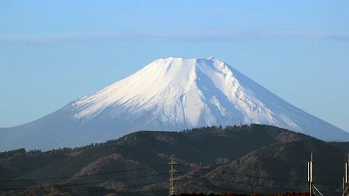 上方に一文字の雲が見えてました。 八王子アメダスの今朝の最低気温はマイナス0.1℃。これで3日連続の氷点下です。これから天気は下り坂で、今夜から明朝にかけて富士山では降雪がありそうです。明後日には雪化粧が進んだ姿を拝めるかもしれません。