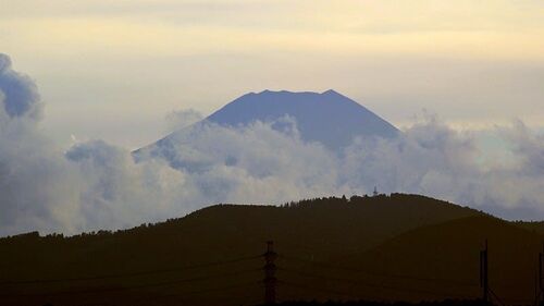 8月最後の日、日没前に山頂付近だけ見えてきたところを撮影。 撮影後、10分も経たずに雲隠れしてしまいました。残雪はさすがに消えたと思いますが、朝撮りでないと確認できませんねぇ。