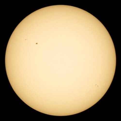 久しぶりに太陽面を撮影。 EOS60Da+EF70-300mm F4-5.6ISⅡUSM(@300mm)+ND10000太陽撮影用フィルター(コレ無しでは危険!) 左上方に濃くて大きめの黒点があります。その他にもいくつか黒点群がありますが、いずれも薄いです。