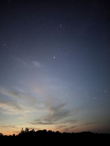 今日の夜明け前、東の空にこんな光景が見られました。 Google Pixel7a 天体撮影モードにて撮影 三脚使用 中央やや上で一番目立ってるのが木星(Jupiter)、その右斜め上の明るめの星が火星(Mars)、火星の右斜め下にある同等の明るさで写っているのが1等星アル…