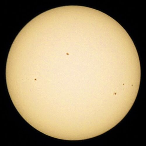 今月最初の太陽撮影。 EOS60Da+EF70-300mm F4-5.6ISⅡUSM(@300mm)+ND10000太陽撮影用フィルター(コレ無しでは危険!) ミドルサイズの黒点が5個程度あります。先週より若干寂しい?