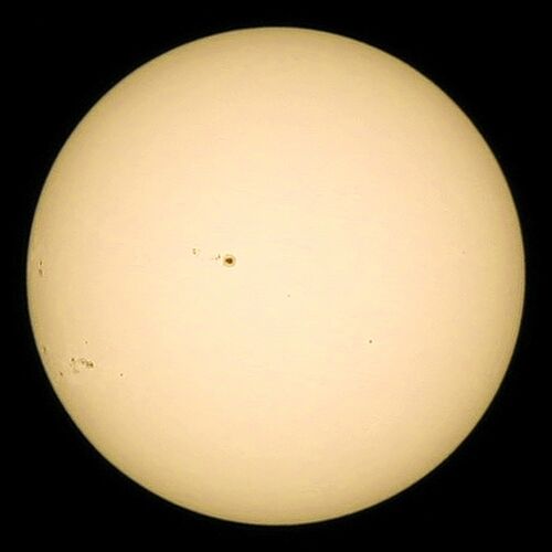 5日ぶりに太陽を撮影。 EOS60Da+EF70-300mm F4-5.6ISⅡUSM(@300mm)+ND10000太陽撮影用フィルター(コレ無しでは危険!) 前回の撮影時、左端に見え始めた黒点が太陽の自転で中央付近に見えるようになりました。割と大きい感じです。南東(左下)の端からは小粒…