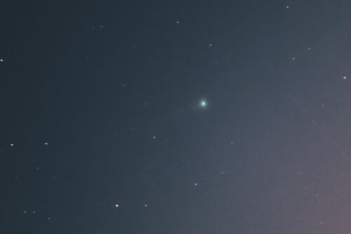 14日もアトラス彗星(C/2024 G3)を自宅ベランダから狙ってみました。 【アトラス彗星(C/2024 G3)01/14】 キヤノンEOS Ra+タカハシFSQ-85EDP+レデューサーCR0.73×, StarScapeフィルター使用,F3.8,ISO100, 総露出時間0.16秒(1/250秒×40コマ,彗星頭部コ…