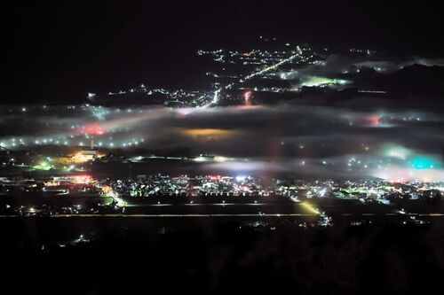 先々週にアトラス彗星(C/2024 S1)狙いで出掛けた魚沼スカイラインの某所にて夜景も撮影しました。まずは南寄りを撮ったのがこちら。 手前側は南魚沼市塩沢付近の市街地ですが、低層雲がかかっていて、ちょっと幻想的な雰囲気を醸し出してました。水まんじゅ…