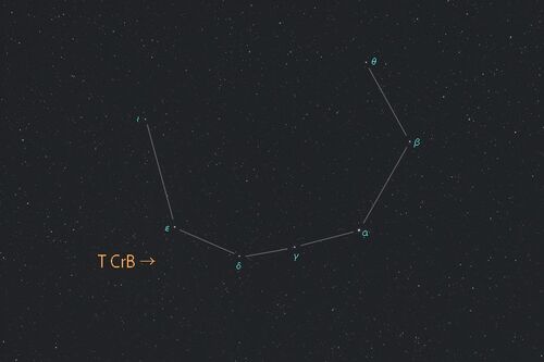 春の星座の1つである「かんむり座」の方向に少し特異なタイプの星があります。普段の明るさは肉眼では見えないレベルなのに、突然2~3等級まで増光する性質を持つ星で、「かんむり座T星」という名称が付いてます。1866年5月と1946年2月に増光が観測されてい…